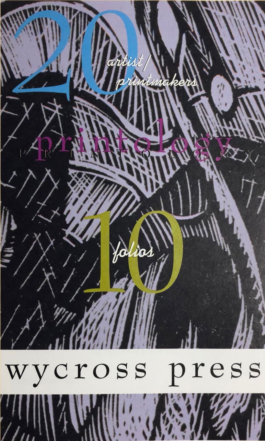 For 10 years, from 1990-2000, Wycross Press invited and hired 2 artists/printmakers each year to create a print. The subsequent folios each contain the work of 2 artist/printmakers plus an illustrated colophon by Conrad Ross. The colophons accompanying each folio are distinctive, making comment on the times in which the work was done as well as the materials used, the names of those involved and the place and date of work.